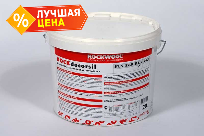 ROCKdecorsil − декоративная силиконовая штукатурка на основе сополимерной акрилатной водной дисперсии, эмульсии силикона и смеси мелкозернистых и крупнозернистых минеральных наполнителей. Применяется для защитной и декоративной отделки фасадов в системе фасадного утепления ROCKFACADE.